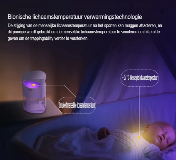 Deze lamp trekt muggen aan met UV-licht en vangt ze stilletjes op. Geniet van rustige, mugvrije nachten zonder chemische sprays.